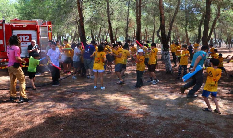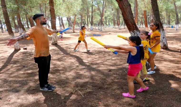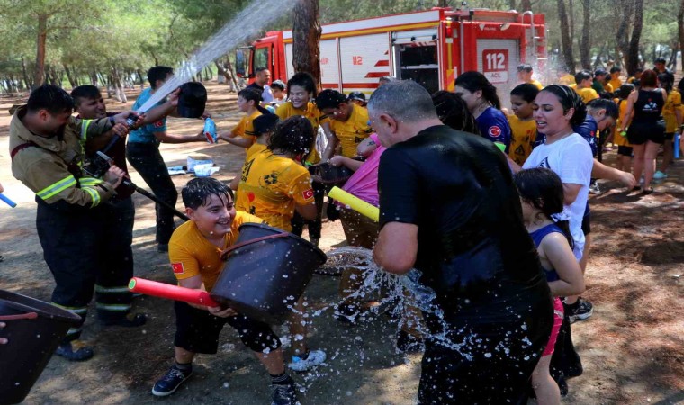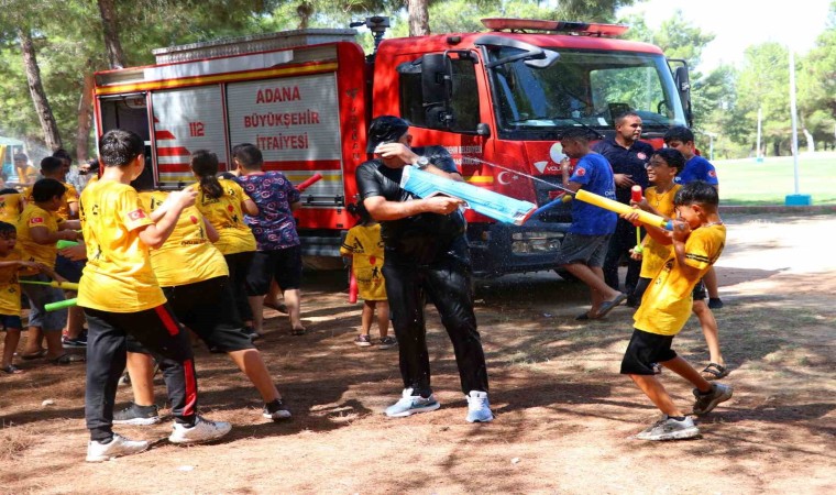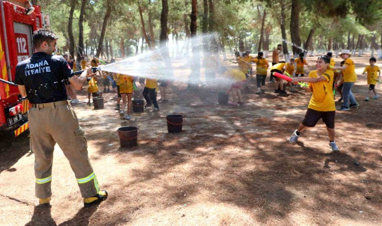 Türkiye’nin en sıcak illerinden olan Adana’da hava sıcaklığı mevsim normallerinin üzerinde seyrediyor. Meteoroloji Genel Müdürlüğü verilerine göne gün içerisinde gölgede hava sıcaklığı 40 derece ölçülürken, güneş altındaki termometreler sıcaklığı 45 ile 50 derece arasında gösteriyor. Adana’da bir dernek, çocukları Sarıçam Yörük Ormanı’na götürdü. Burada çocuklar eğitmenler eşliğinde kamp yaparak doğa sevgisini öğrenirken, Dernek Başkanı Ogün Sever Okur ve kebapçı Yaşar Aydın su savaşı etkinliği düzenledi. Yaklaşık 100 çocuk için su tabancası ve su balonu satın alan ikili, ardından itfaiyecileri de etkinlik alanına çağırdı. Sıcaklardan bunalan çocuklar, itfaiyecilerle birlikte su savaşı yaparak saatlerce eğlendi. İtfaiye de hortumla çocukları ıslattı. Mutluluğu gözlerinden okunan çocuklar, tepeden tırnağa ıslandı. Su savaşı, renkli görüntülere sahne oldu.