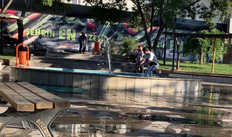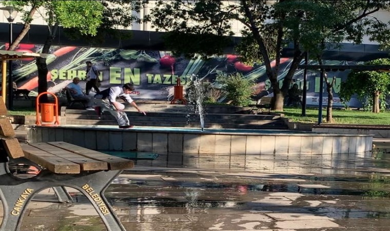 Ankara’da çocukların parkın bahçesindeki süs havuzunda tehlikeli serinleme yöntemi, cep telefonu kameralarına yansıdı.