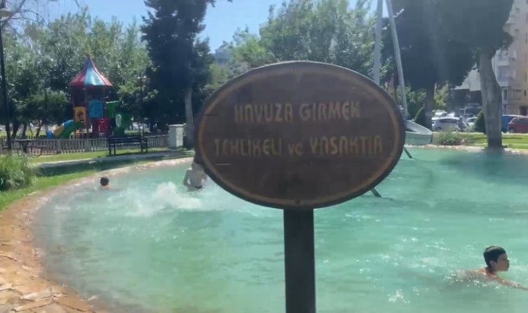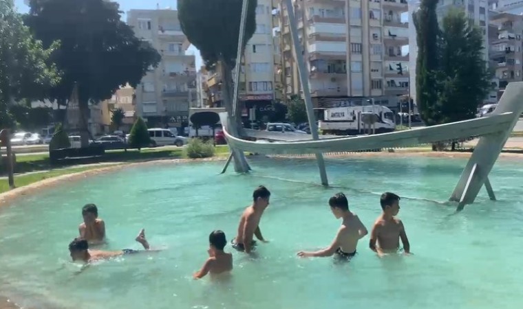 Hava sıcaklıklarının 40 dereceye yaklaştığı, zaman zaman ise 45 dereceye kadar çıktığı Antalya’da çocuklar, serinlemek için süs havuzlarına girdi. Öğle saatlerinde Muratpaşa Mahallesi Evliya Çelebi Caddesi’nde bulunan parka gelen çocuklar, kıyafetlerini çıkararak süs havuzuna girdi. Elektrik akımı tehlikesinin bulunduğu havuzda çocuklar, suyla eğlenmeye ve serinlemeye devam etti. Zaman zaman süs havuzunun fıskiyelerinin olduğu noktaya gidip oynayan çocuklar, zaman zaman da süs havuzunun kenarına çıkarak havuzun içine balıklama atladı.