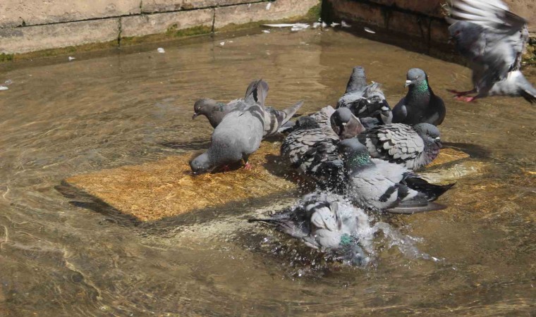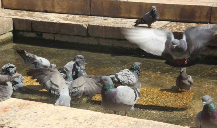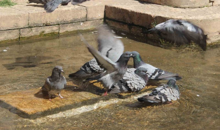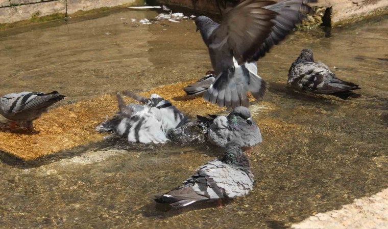 Ziyaretçilerden Mustafa Köksallı ise “Sıcaktan bunalan güvercinler suya girerek serinliyorlar. Meteoroloji verilerine bakıyorum 40 derece gösteriyor, arabada 53 derece gösteriyor. Çok sıcak, Allah kuşlara da sabır versin” diye konuştu.