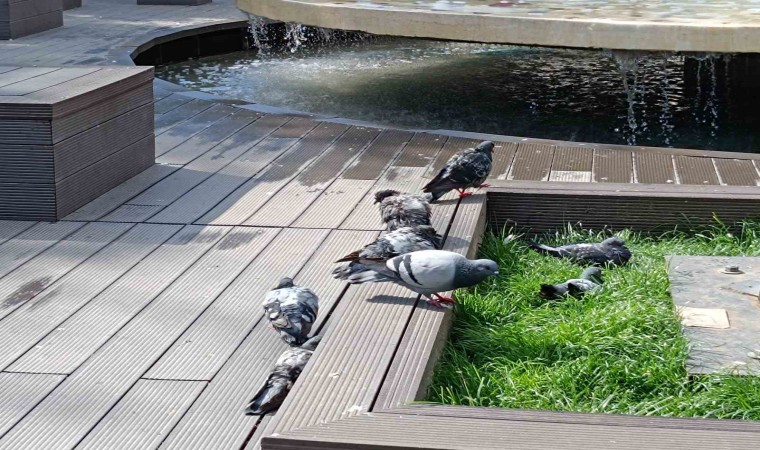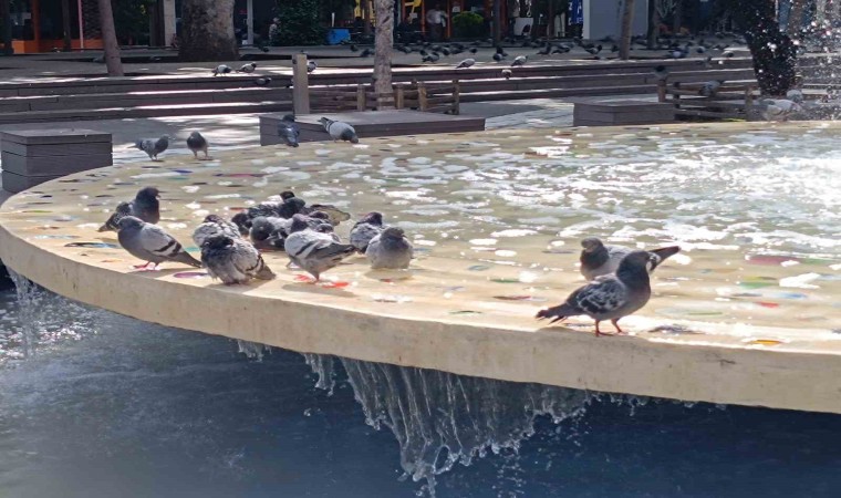 Günün erken saatlerinde havuz kenarına konan kuşların oluşturduğu yoğunluk göze çarptı. Adeta keyif yapan sevimli kuşların halleri vatandaşlarca cep telefonu ile fotoğraflandı. Sempatik görüntü oluşturan güvercinler, mevsim geçişinde serinlemeyi ihmal etmedi.