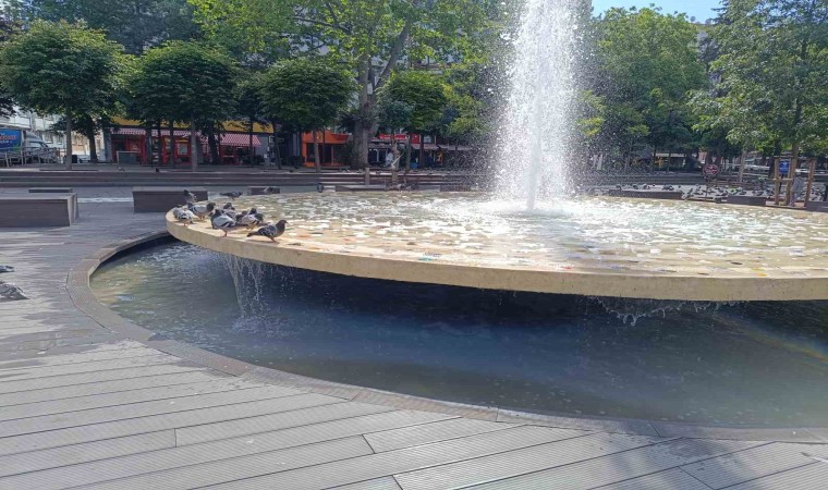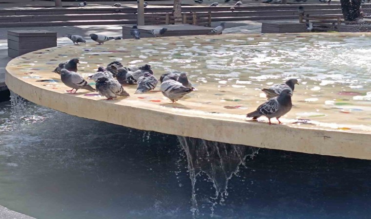 Odunpazarı ilçesinde bulunan Yediler Parkı’nda sıcaktan bunalan güvercinler havuza girerek serinlemeye çalıştığı görüldü.