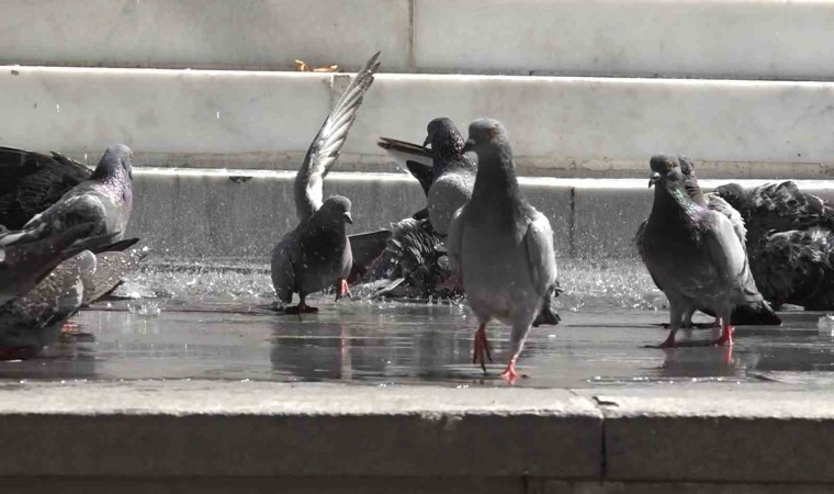 Sıcak havalardan insanlar kadar hayvanlar da etkilendi. 15 Temmuz Demokrasi Meydanı’nda bir esnaf, sıcaktan bunalan güvercinlerin imdadına yetişti. Meydanda bulunan çeşmeye hortum takan esnaf, kuşlara su tutarak serinletti. Buz gibi suyun altında rahatlamaya çalışan güvercinlerin kanatlarını kaldırıp çırpınması renkli görüntüler oluşturdu.