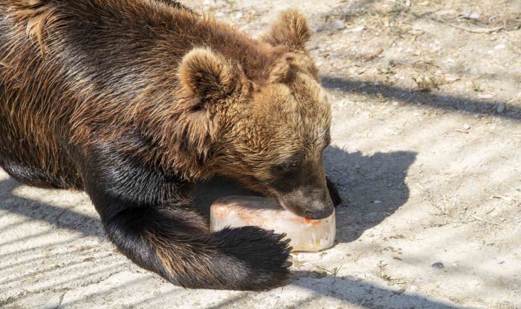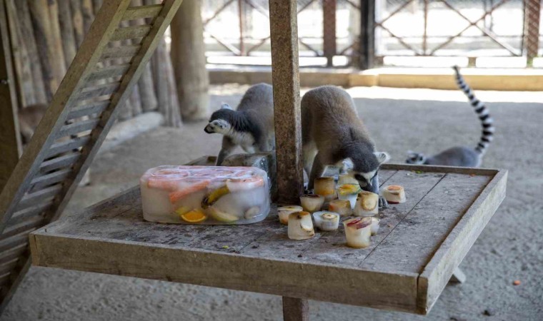 Buzlu meyveleri, hayvanların sevdiği meyvelere göre hazırladıklarını ifade eden Ölmez, “Meyvelerimizde elma, armut, muz, kivi, portakal, havuç, kuru incir var. Meyvenin haricinde ceviz, fındık gibi kuruyemişler de veriyoruz. Buradaki hayvanların en çok memnun olduğu saatler bu serinletmeleri yaptığımız, buzları verdiğimiz ve suladığımız saatler oluyor” diye konuştu.
