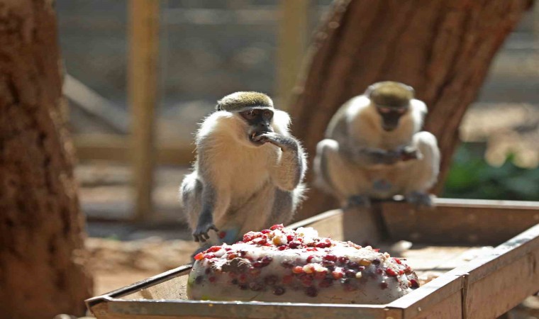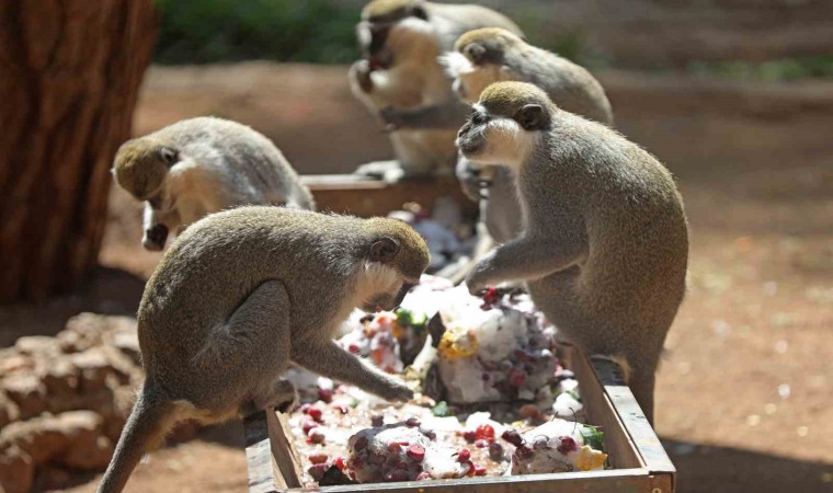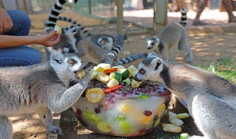 Antalya’yı etkileyen sıcak hava dalgası hayvanları da zor durumda bırakıyor. Doğal Yaşam Parkı’ndaki görevliler hayvanları sıcaklardan korumak için büyük çaba sarf ediyor. Sıcaktan bunalan hayvanları özel hazırlanmış buz kalıpları içinde meyve kokteylleri ile besleniyor. Doğal Yaşam Parkı sakinlerinden lemur, eşek, at, zebra, deve ve maymunlar karpuz, kiraz, üzüm, elma gibi meyvelerden oluşan buzlu kokteyllerini yiyerek serinliyor. Doğal Yaşam Parkı’nda sıcaklara karşı ayrıca hayvanların kafeslere konulan fıskiye sistemi, havuzlar, koyu gölgelik alanlar aracılığıyla da serinlemeleri sağlanıyor.