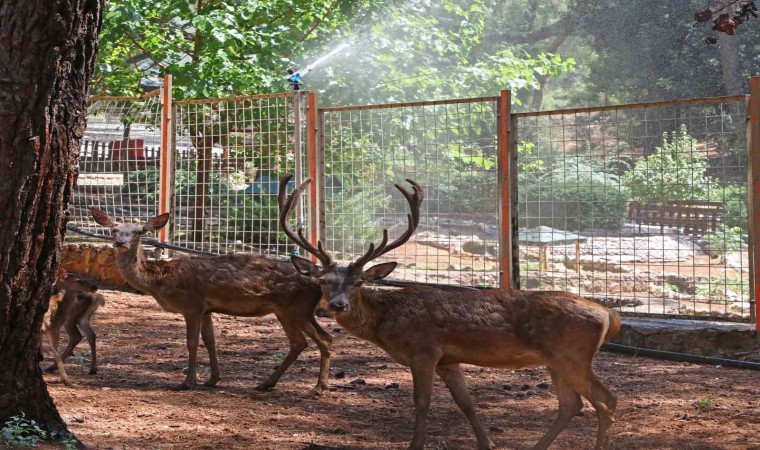Türkiye’nin en büyük hayvanat bahçelerinden biri olan Antalya Büyükşehir Belediyesi Doğal Yaşam Parkı’nda bulunan 127 türde bin 400’ün üzerindeki hayvan, Antalya’daki hava sıcaklığından olumsuz etkilenmemesi için özel olarak serinletiliyor.