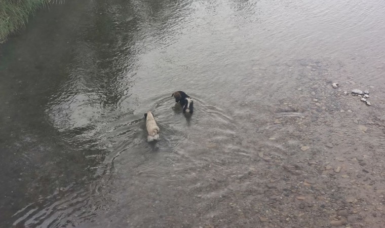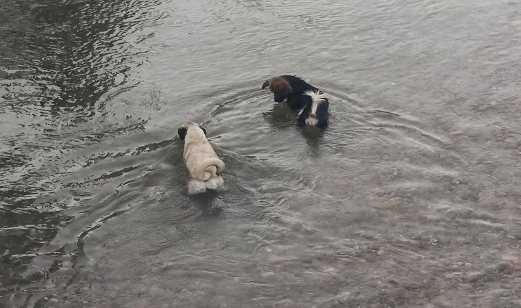 Tunceli’nin Çemişgezek ilçesinde sıcaktan bunalan köpekler, Tağar Çayı’nda serinledi. Köpeklerin keyifli anları, cep telefonu kamerasıyla kaydedildi.