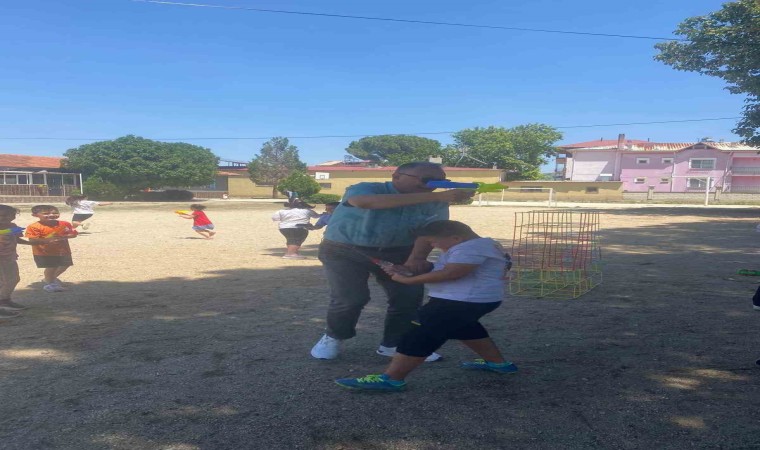 Hava sıcaklığının oldukça yüksek olduğu Sarıgöl ve çevresinde okullar yıl sonu etkinlik programları ile öğrencilerinin mutlu bir şekilde tatile girmeleri için çeşitli etkinlikler gerçekleştiriyor. Bağlıca Halil Duran İlkokulunda da öğrencilerin hem eğlenmesi hem de serinlemeleri için su tabancalarıyla serinletme oyunu oynandı. Etkinliğine katılan Okul Müdürü Ahmet Balamutcu tüm öğrencilerin hedefi olunca oyunda en çok ıslanan ve serinleyen isim oldu.