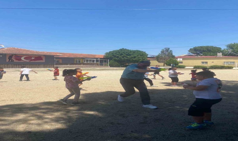 Manisa’nın Sarıgöl ilçesi Bağlıca Halil Duran İlkokulunda yıl sonu etkinlikleri çerçevesinde sulu tabancayla serinleme etkinliği yapıldı. Sıcaktan bunalan öğrenciler hem eğlendi hem de serinledi.
