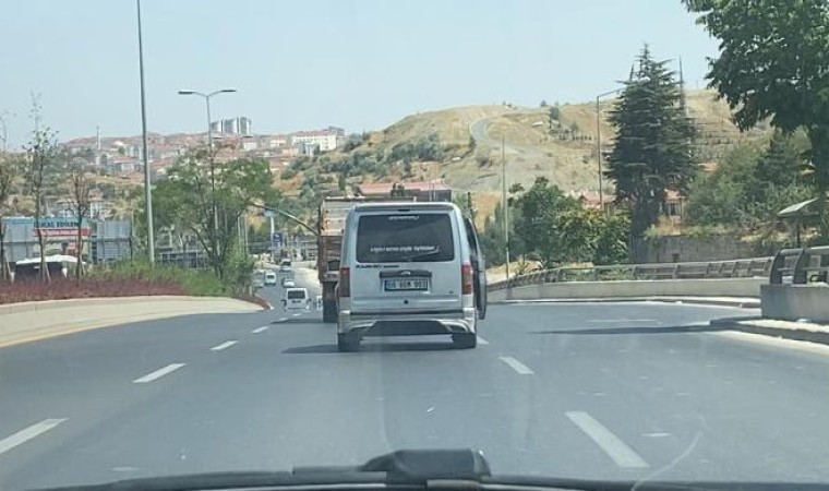 Ankara’da sıcaktan bunalan bir vatandaş, otomobilinin kapısı açık bir şekilde seyahat etti. O görüntüler ise bir vatandaşın cep telefonu kamerasına yansıdı.