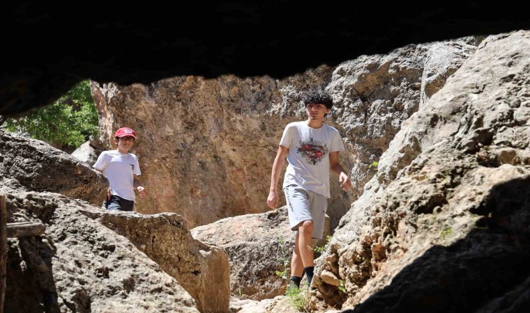 Meteorolojinin sıcaklık uyarısı yaptığı Elazığ’da vatandaşlar, serinlemek için Buzluk mağarasına akın etti.