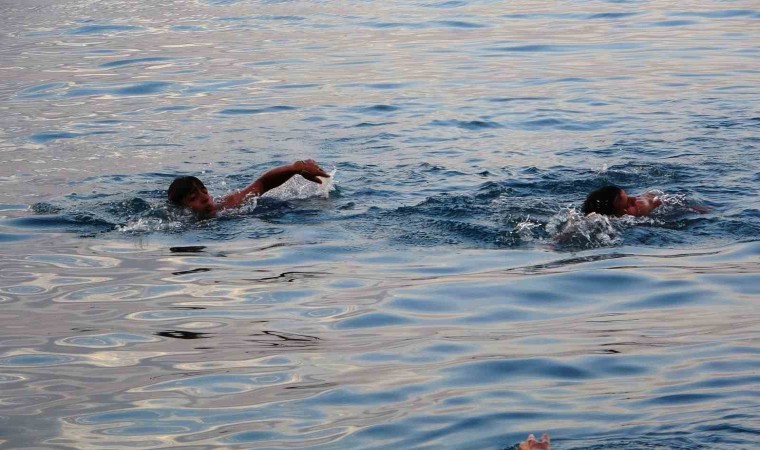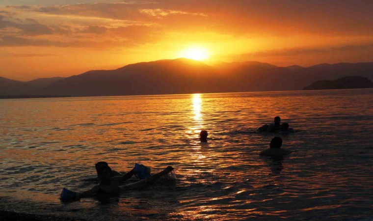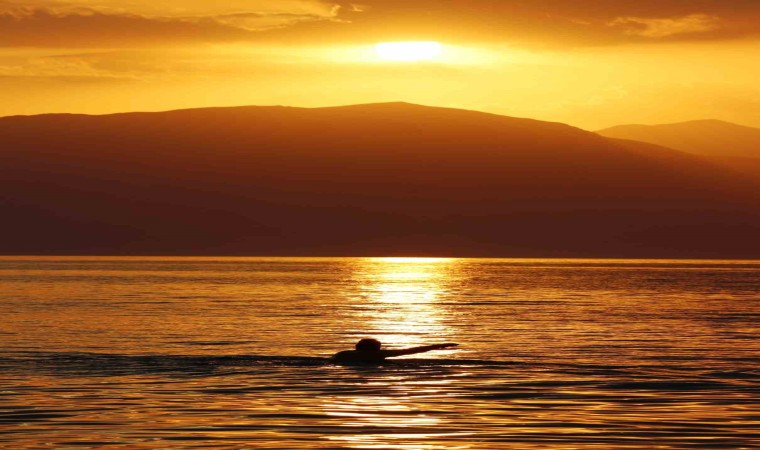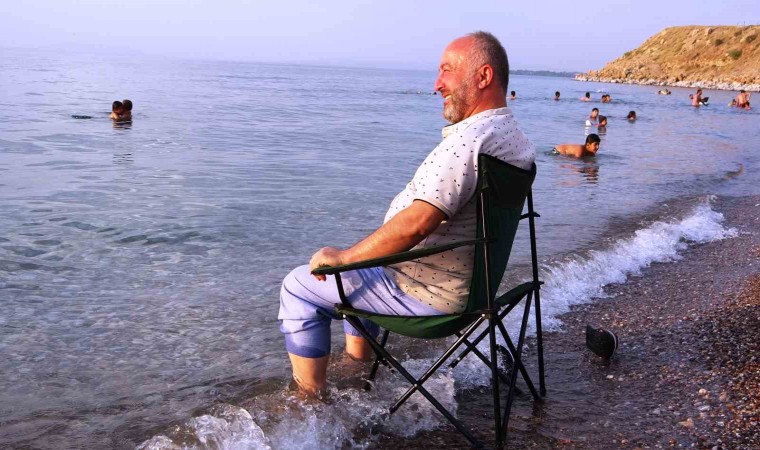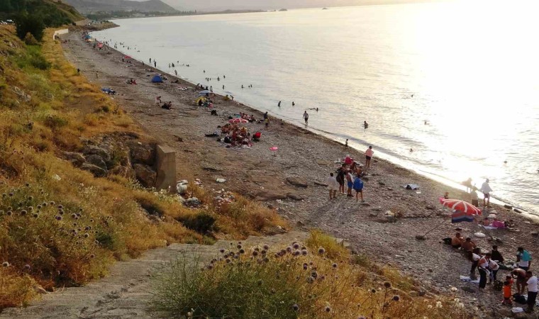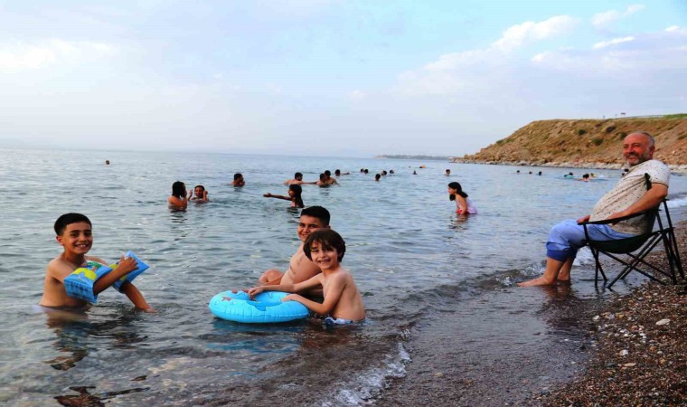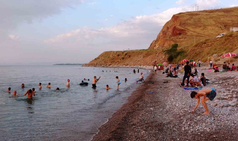 Van’da aşırı sıcaklardan bunalan vatandaşlar serinlemek için Van Gölü sahillerine akın etti.