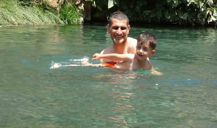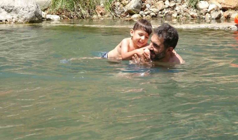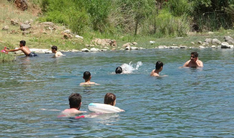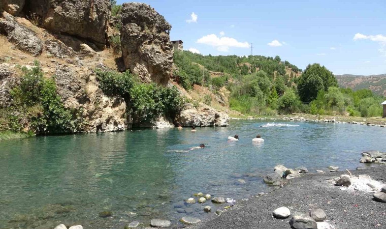 Bingöl’ün Ilıcalar beldesinde bulunan ve şifalı olduğu düşünülen doğal kaynak suyu, hem sıcaktan bunalanların hem de yüzmek isteyen çocukların uğrak noktası haline geldi.