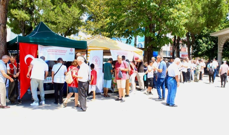 Denizli’de Aydın Vakıflar Bölge Müdürlüğü tarafından sıcak yaz günlerinde serinleten etkinlik düzenlendi. Aydın Vakıflar Bölge Müdürlüğüne bağlı Mazbut Vakıfların vakfiyelerinde yazılı hayır şartı ve hizmetlerini yerine getirmek üzere, Cuma namazının ardından Delikliçınar Yeni Cami bahçesinde kar helvası ve bal şerbeti ikramı yapıldı. Etkinliğe İletişim Başkanlığı Muğla Bölge Müdürü Ahmet Uzun, Gençlik Spor İl Müdürü Ömer İlman ve çok sayıda davetli katıldı. Etkinlikte yaklaşık 2 bin kişiye kar helvası ve bal şerbeti ikram edildi.