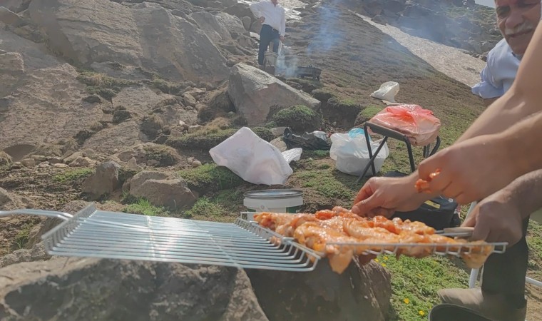 Son zamanlarda hava sıcaklığı kendini iyice hissettirmesiyle vatandaşlar serinlenmek için farklı etkinlikler düzenliyor. Adilcevaz ilçesinde yaşayan vatandaşlar havaların sıcak geçmesi nedeniyle sıcaktan bunalınca çareyi Süphan Dağı’nın eteklerinde karların özerinde piknik yaparak serinleniyorlar. Süphan Dağı’nın 3 bin 150 rakımında bulunan kar üzerinde bir yandan mangal yaktılar bir yandan semaver çayı keyfini çıkarıp serinlendiler. Havaların çok sıcak olduğunu söyleyen Öözcan Karamercan isimli vatandaş, “Havalar çok sıcak olduğu için çoğu insanlar tercihini Van Gölü’ne girmekle buluyor. Ama biz farklı bir tercih yaptık. Boş zamanlarımızı Süphan Dağı’nın eteklerindeki karların üzerinde piknik yapmakla zamanımızı değerlendiriyoruz. Bize göre bu tercihimiz daha mantıklı. Çünkü hava serin, mangalımızı yakıyoruz, semaver çayımız var. Ben herkesi buraya davet ediyorum. Gelin sizde serin ve temiz havadan faydalanın” dedi.
