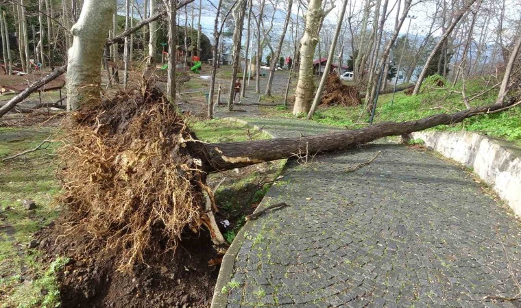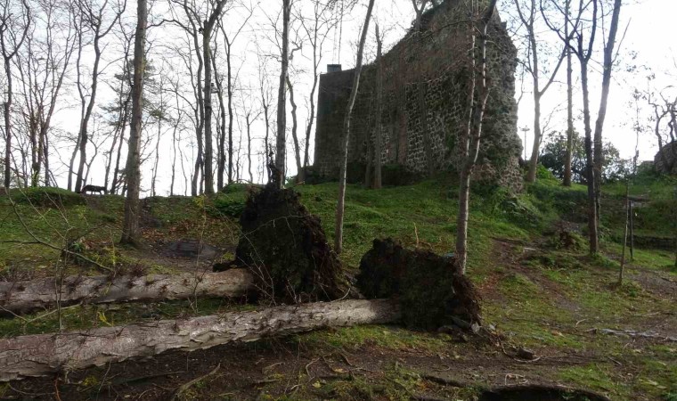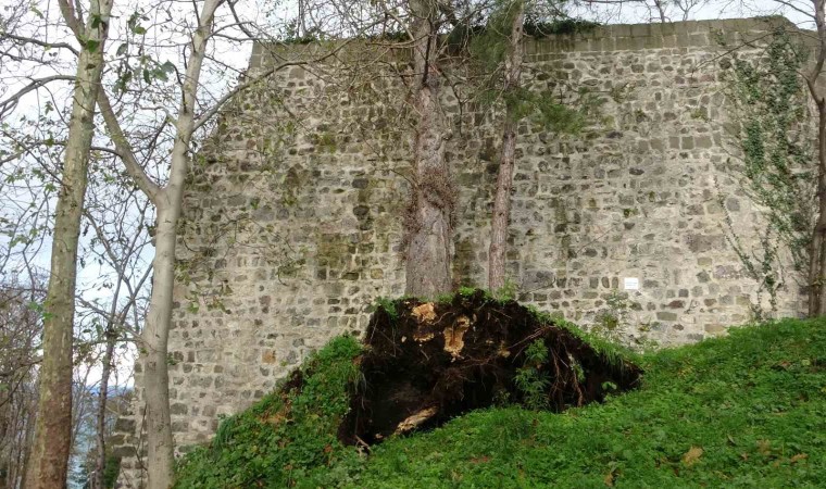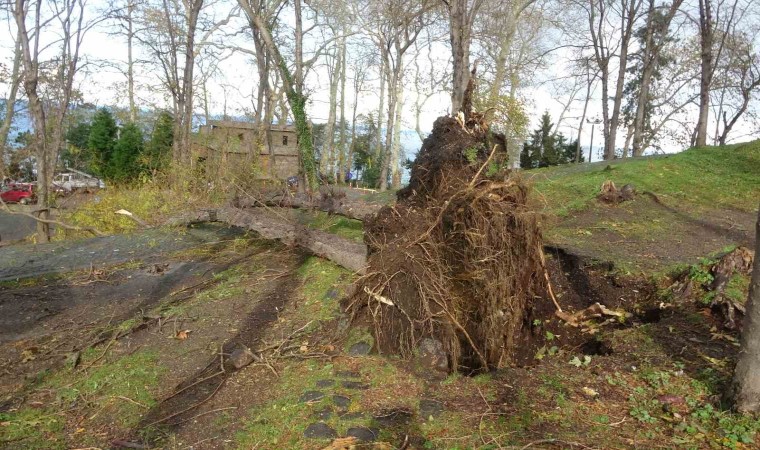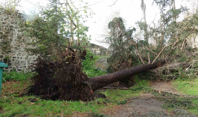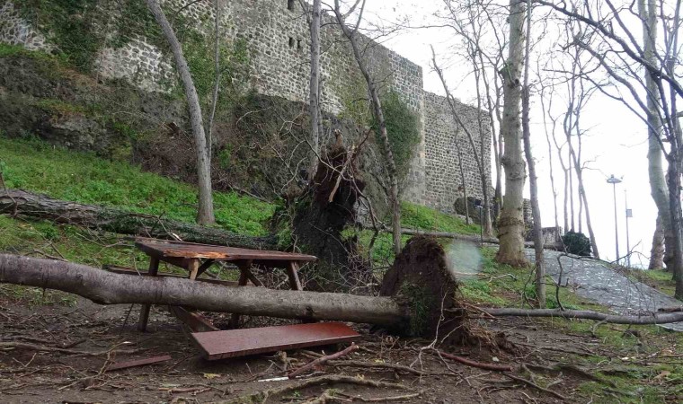 Giresun’da yazın binlerce yerli ve yabancı turistlerin ziyaret ettiği Giresun Kalesi’ndeki asırlık ağaçlar fırtınaya dayanamayarak adeta kökünden sökülerek devrildi.