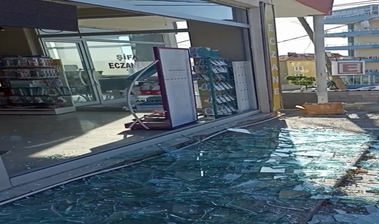Görüntülerde, kanepenin iş yerinin bahçesine düşerek sürüklendiği görüldü. Daha sonra binanın çatısındaki kiremitlerde iş yerinin bahçesine düşüyor.