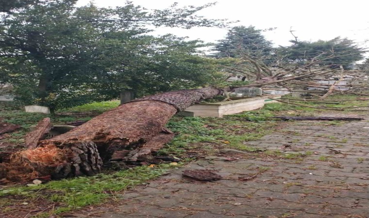 Hafta sonu Türkiye’nin birçok ilinde etkili olan fırtınadan Düzce’de önemli ölçüde etkilendi. Şehir Mezarlığı’nda ağaçlar kök kısmından devrilerek şiddetli rüzgârın etkisiyle kabirlerin üzerine yıkıldı. Ağaç köklerinin yüzeye çıkması nedeniyle bazı kabirlerin taşları ve mermerleri kırıldı.
