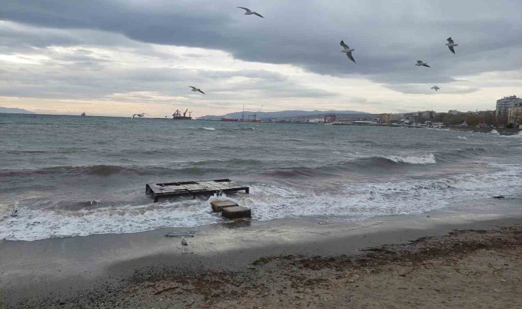 Marmara Denizinin Tekirdağ kıyılarında etkili olan lodos fırtınası deniz ulaşımını olumsuz etkiliyor.