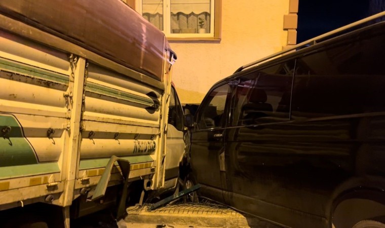 Bursa’da şiddetli lodosa yenik düşen kamyonet, park halindeki otomobile çarptıktan sonra giriş katındaki dairenin salonuna girdi. Trajikomik kazada yaralanan olmazken, araçlarda ve evde maddi hasar oluştu.