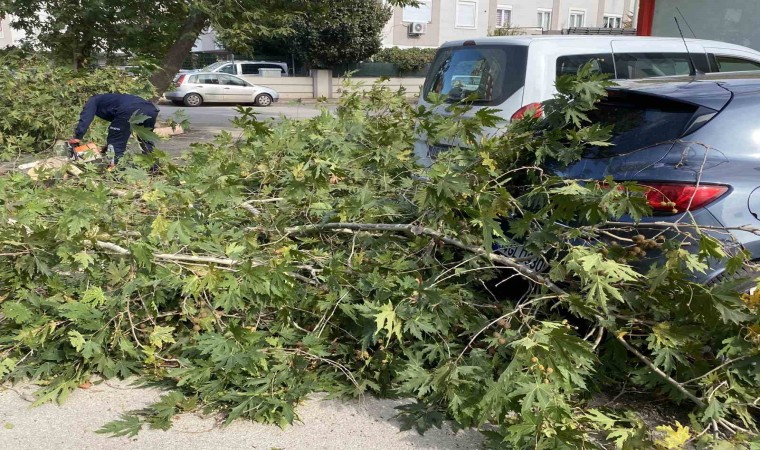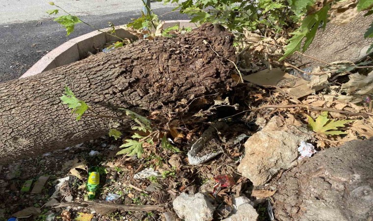 Antalya’da, şiddetli rüzgârın etkisi ile bir çınar ağacı kırılarak yola devrildi. Park halindeki bir otomobilde küçük çapta hasar meydana geldi.