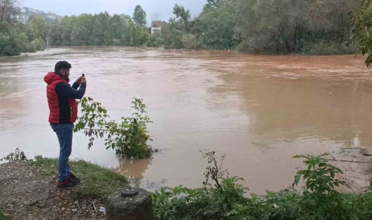 Bartın’da etkili olan sağanağın ardından su seviyesi yükselen Bartın Irmağı su baskınlarına neden olurken, yağışlarla birlikte ırmak adeta çamur akmaya başladı.