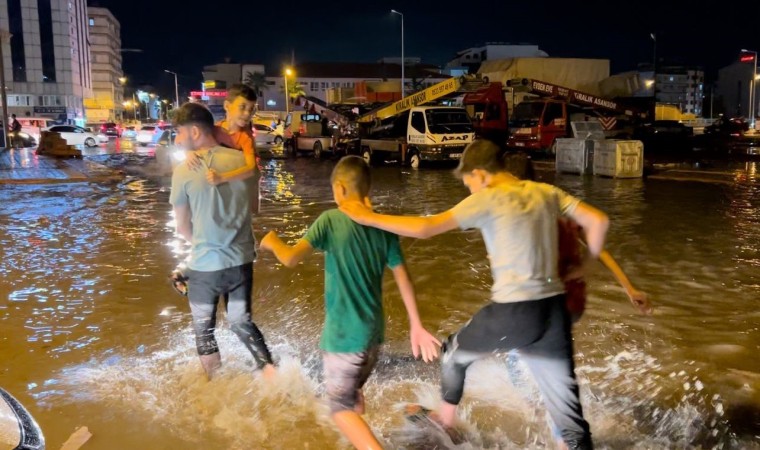 Hatay’ın İskenderun ilçesinde etkisini hissettiren şiddetli yağış, vatandaşlara zor anlar yaşattı. Göle dönen caddelerde motosikletler ve araçlar mahsur kaldı.