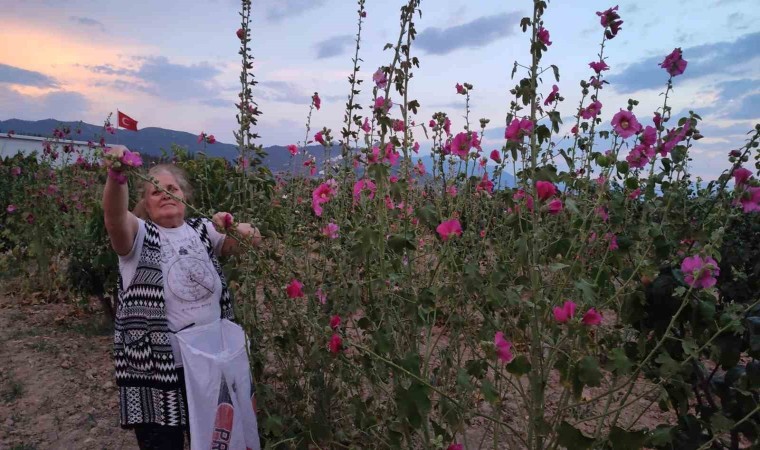 Denizli’nin Honaz ilçesine bağlı Kaklık Mahallesi’nde, ayva bahçesinin içine ikinci ürün olarak diktiği hatmi çiçeklerinin hasadına devam eden Meryem Göçtü, "Geçtiğimiz yıl Mart ayında hatmi çiçeği tohumunu ektik, Nisan ayında üç dönümlük ayva bahçemizin içine ikinci ürün olarak hatmi çiçeklerinin fidanlarını diktik. Hatmi çiçeği çok yıllık bir bitki. Bu yıl Haziran ayında ikinci yıl hasadımıza başladık. Gölgede kurutuyoruz, burası 3 dekar, aşağı yukarı 500 kilo kuru hatmi çiçeği hasadı yapmayı hedefliyorum. Türkiye’nin birçok ilindeki aktarlara buradan satış yapıyorum. Kilosunu bu yıl 250 TL’den göndereceğiz. Günlük sabah akşam toplanması gerekiyor. Aynı darı patlağı gibi patlıyor. Dağa bayıra gitmiyoruz, kendimiz organik olarak yetiştiriyoruz. Günlük toplanması gerekir. Toplamazsan dökülür, havalar iyi olursa verim oluyor. Ama havalar kötü olursa verim düşüyor. Yaz aylarında güneşi ne kadar çok görürse o kadar çok açıyor. Havalar soğumaya başlayana kadar hasat devam eder. Yağmur çok olursa boyu çok uzar. Sularsan daha güzel verim alınıyor" dedi.