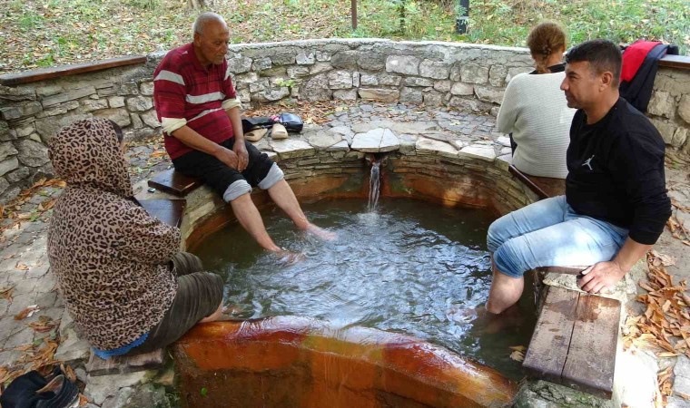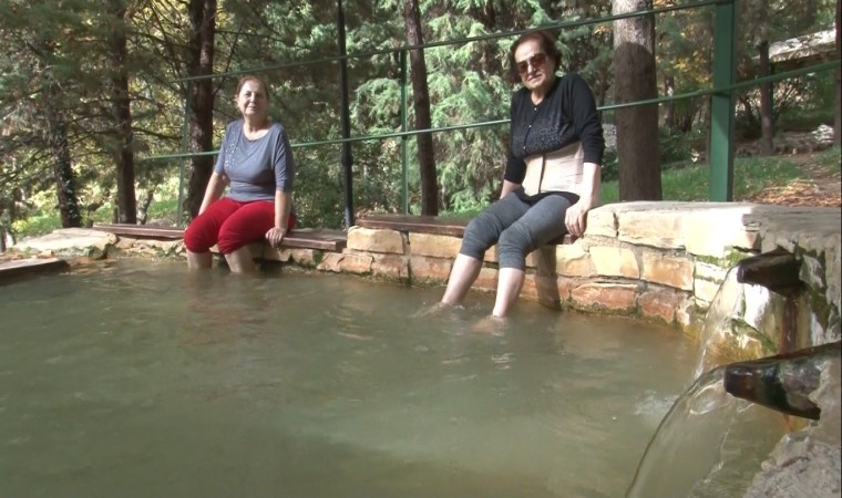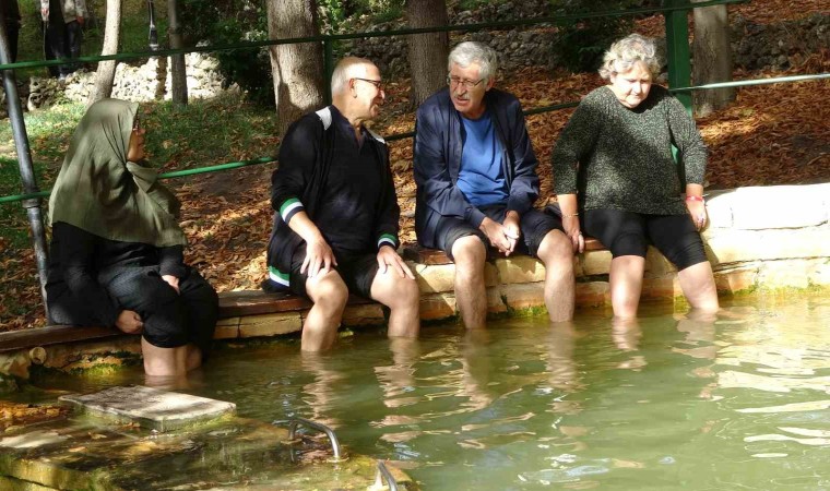 Asım Ünlü ve Abdullah Öztürk de, kaplıca suyuna ayak sallayarak, damar sertliğine şifa bulmak istediklerini dile getirdiler.