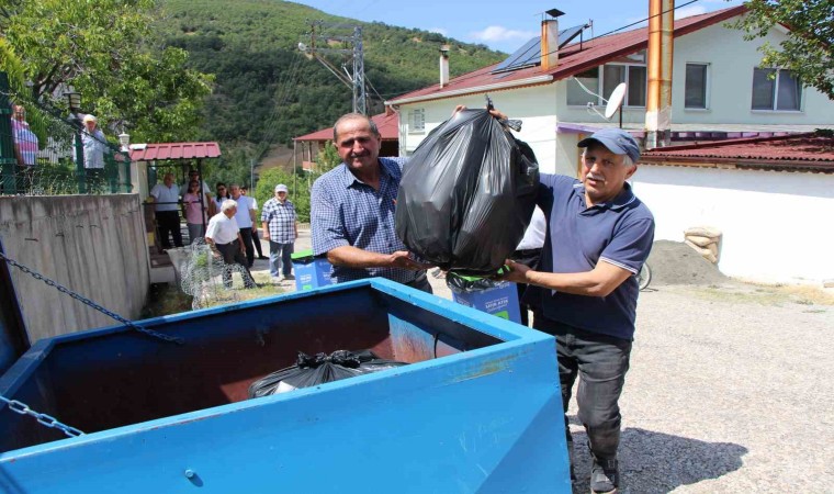 Evsel atıklarla geri dönüşebilen malzemeleri ayrı ayrı biriktirdiklerini anlatan köy sakinlerinden Zülbiye Atamtürk de “İnsanlar iyi oldukça köyde, havası da güzel olur” diye konuştu.