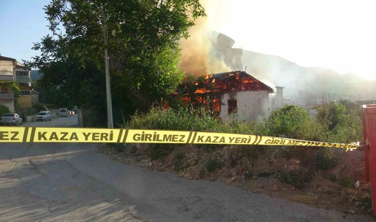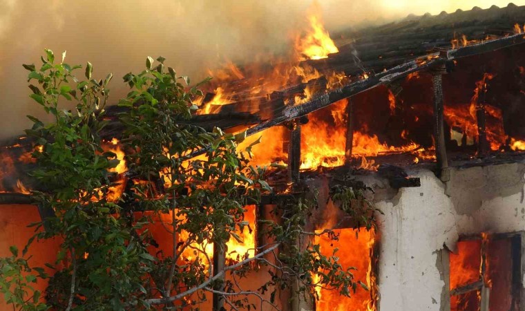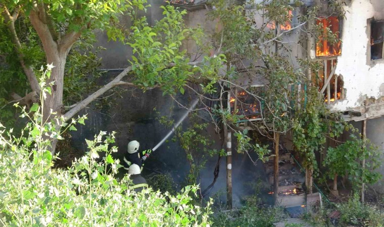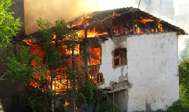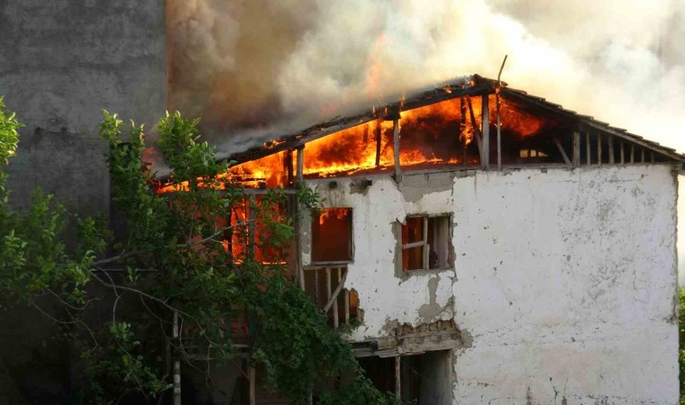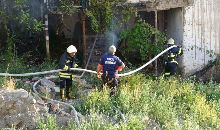 Tokat’ta sigara izmariti atılan iki katlı metruk bina alevlere teslim oldu. Yangında bina kullanılamaz hale geldi.