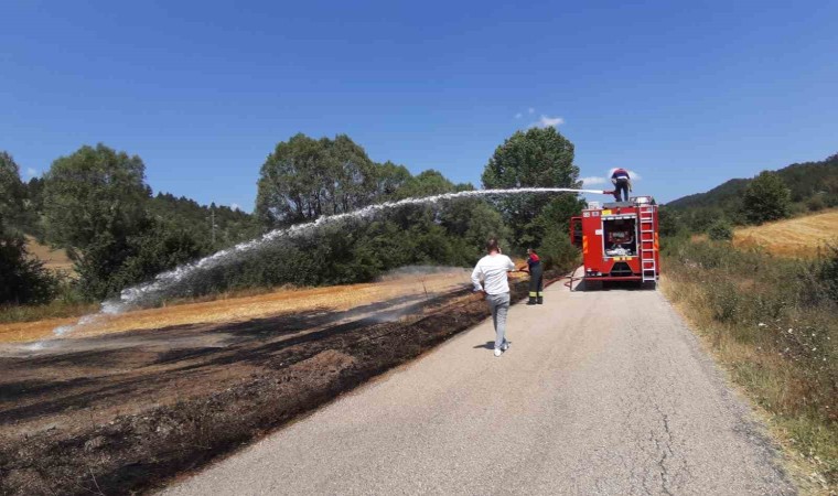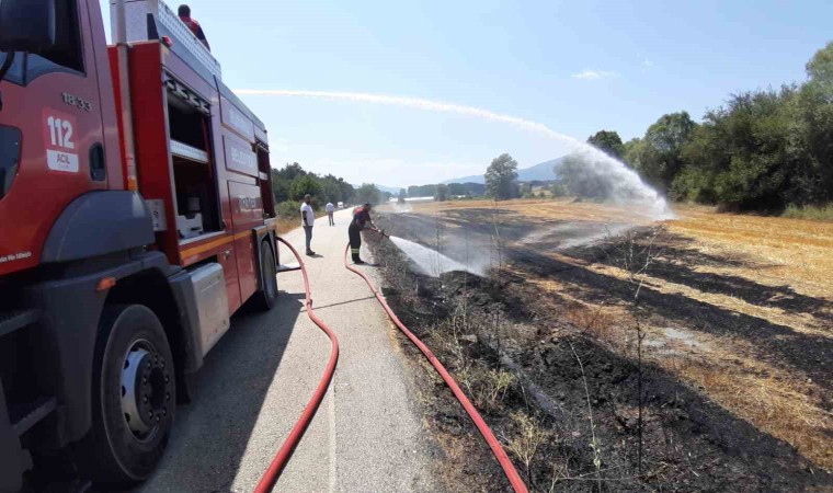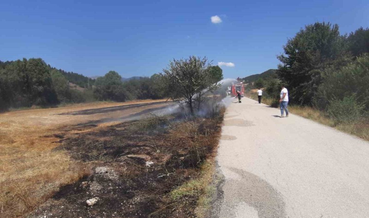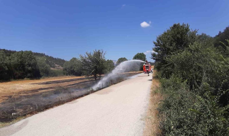 Bolu’nun Mudurnu ilçesinde çıkan anız yangını söndürüldü. Yangına ilk müdahaleyi yapan İlçe Belediye Başkanı Doğan Onurlu, “Aracımızdaki su şişeleriyle ilk müdahaleyi yaptık. Rüzgarın etkisiyle büyüdü. Sigara izmaritinden çıktığını düşünüyoruz” dedi.