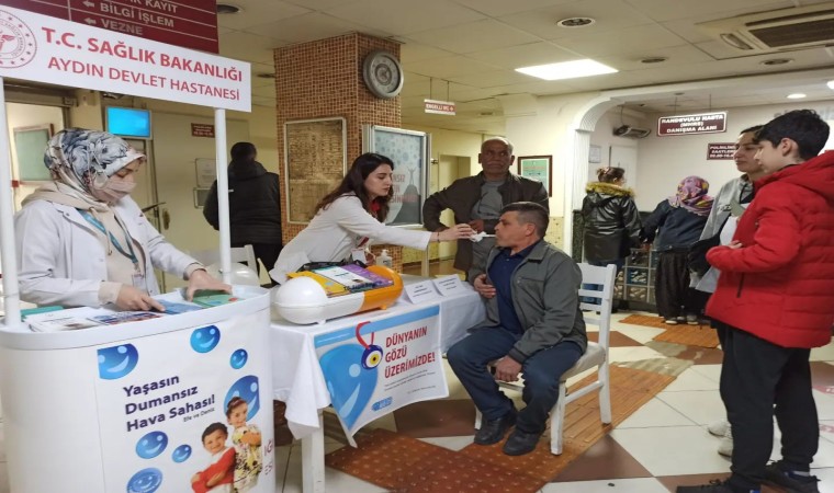 Aydın Devlet Hastanesi tarafından ’Sigara Bırakma Günü’ dolayısıyla sigara ve tütünün zararları konularda bilgilendirme yapılırken, vatandaşlara karbonmonoksit ölçümü yapıldı.