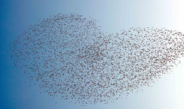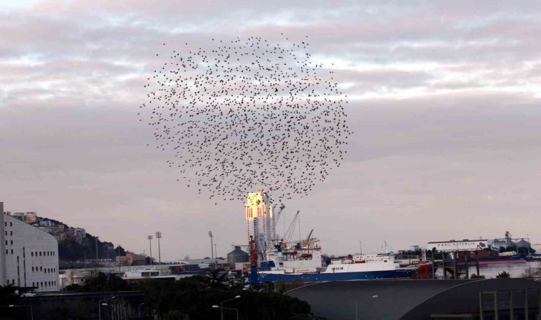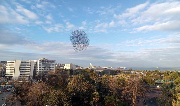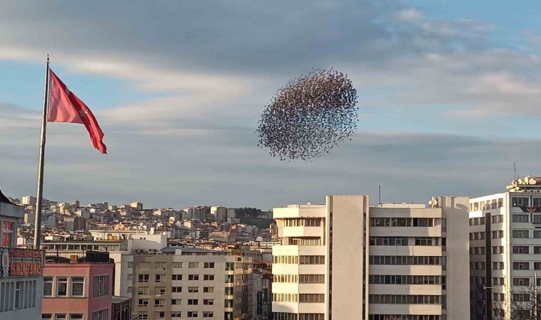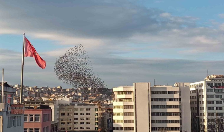 Sığırcık kuşlarının her gün Samsun semalarında sürü halinde uçması, şehre güzellik katıyor. Gökyüzünde kalp çizen sığırcık sürüsü, objektiflere yansıdı.