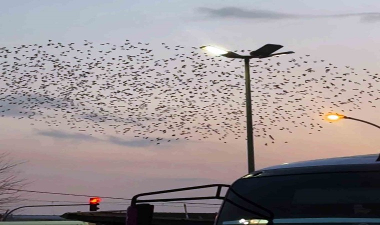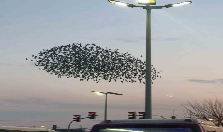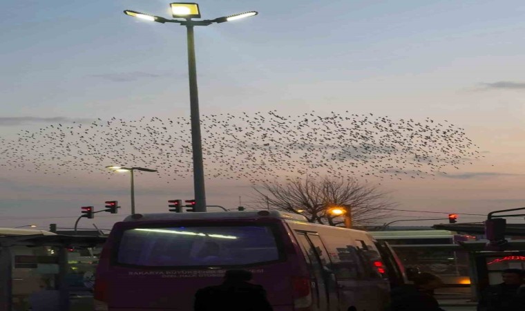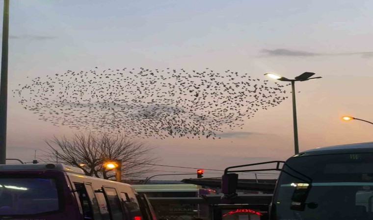 Sakarya’nın Adapazarı ilçesinde yüzlerce sığırcık kuşunun gökyüzündeki dansı görenleri hayran bıraktı.