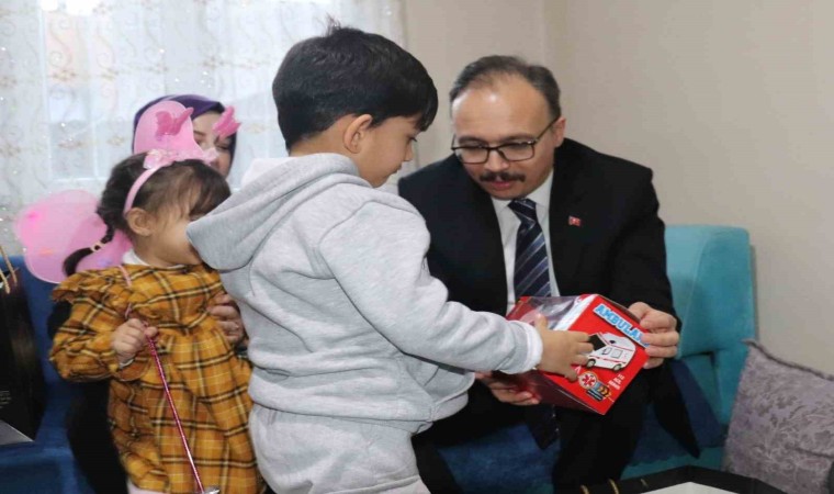 Baba Mustafa Pelen ve aile bireyleri ile sohbet edip taleplerini dinleyen Vali Kızılkaya, misafirperverlikleri için teşekkür ederken, minik Ecrin ve kardeşlerine de çeşitli hediyeler verdi.