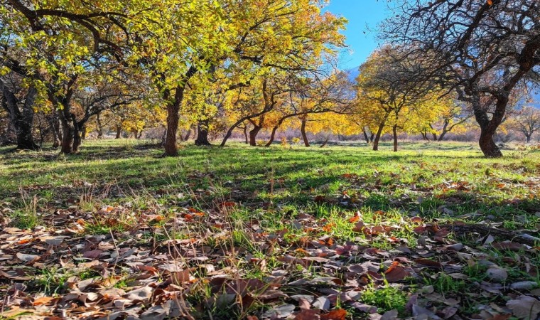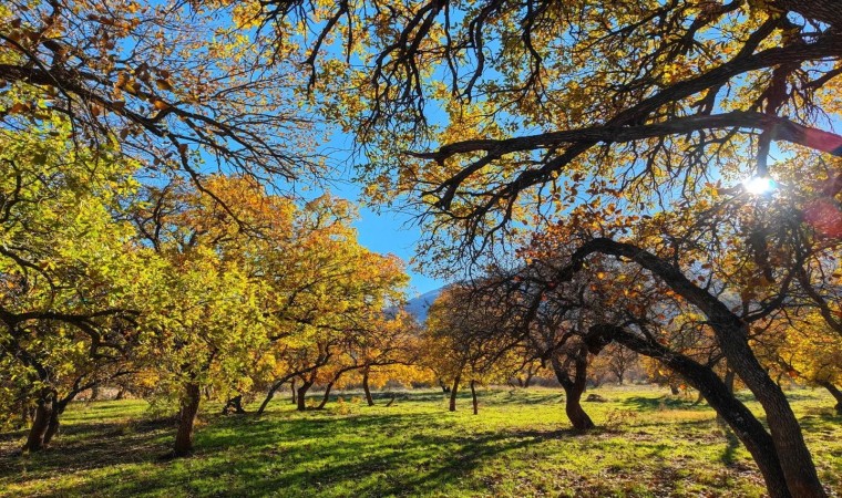 Siirt’in Eruh ilçesinde sonbaharın gelmesiyle sarı ve turuncuya bürünen yapraklar görsel şölen oluşturdu.