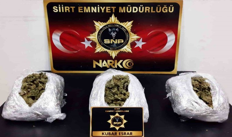 Siirt’te polis ekiplerince bir araçta yapılan aramada 2 kilo 400 gram kubar esrar maddesi ele geçirildi.