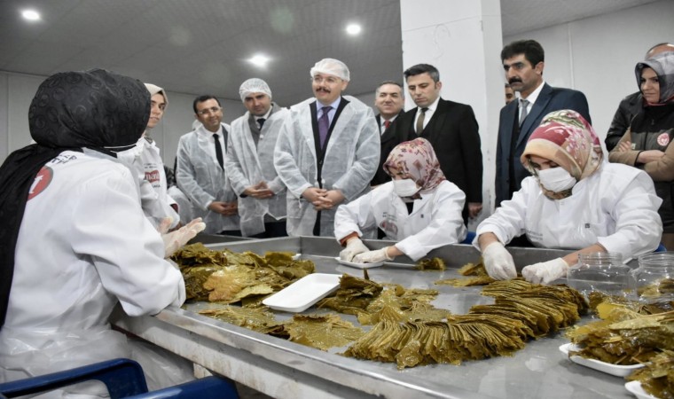 Siirt Valisi Dr. Kemal Kızılkaya, GAP Başkanı Dr. Hasan Maral ile birlikte Şirvan’ın Pirinçlik köyü Üreten Eller Kadın Kooperatifi Tayfi Üzüm Yaprağı Salamura Tesisini ziyaret etti.