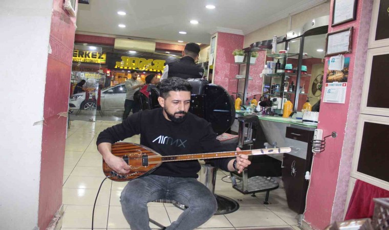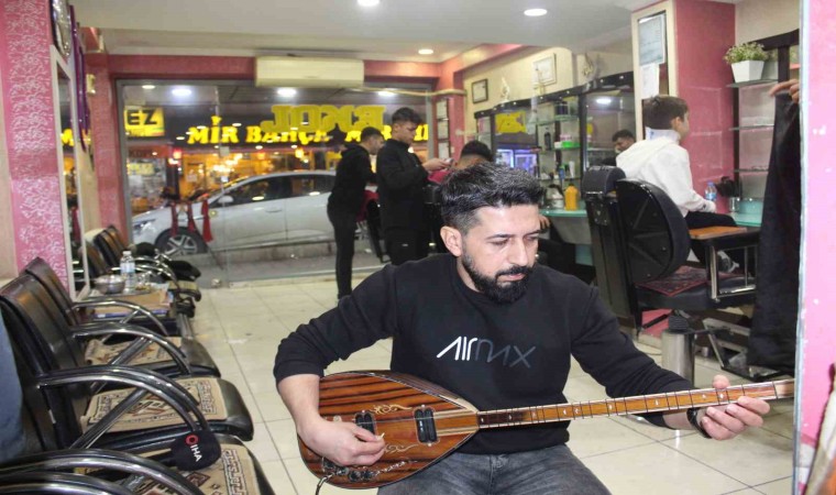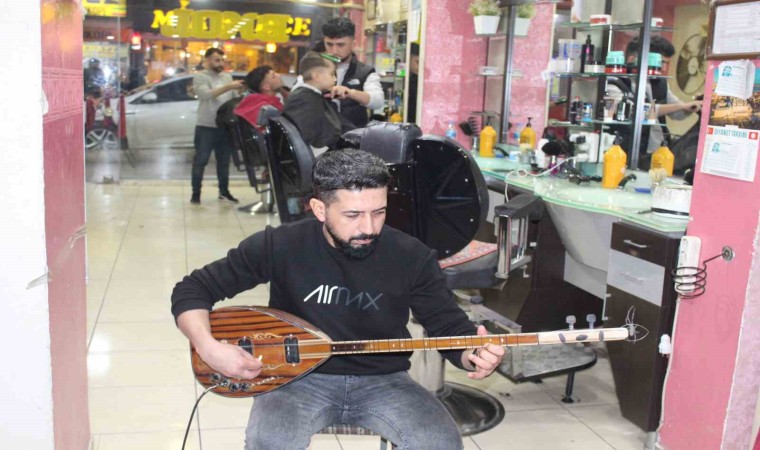 Siirt’te bir berber iş yerine gelen vatandaşları hem tıraş ediyor, hem de sazıyla gönüllerine dokunuyor.
