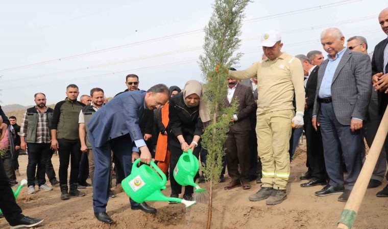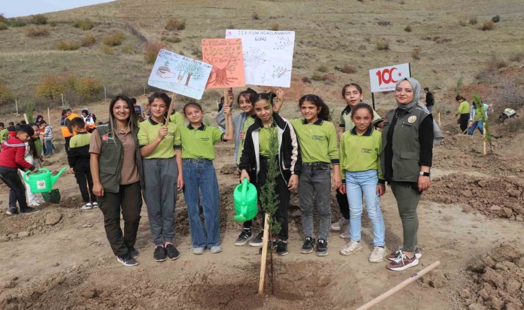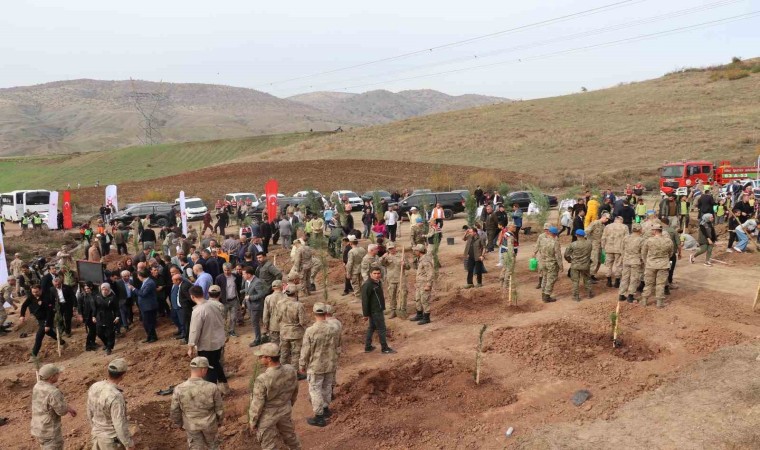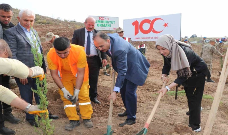 Cumhuriyetin 100’üncü yılı nedeniyle Siirt’in Baykan ilçesine bağlı Veysel Karani beldesinde 200 dönüm alanda 100 bin fidan toprakla buluşturuldu.