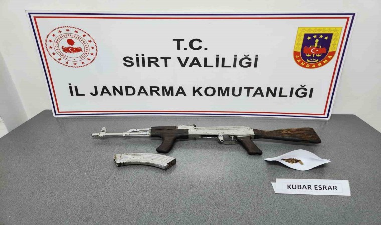 Valilikten yapılan açıklamaya göre, İl Jandarma Komutanlığı Kaçakçılık ve Organize Suçlarla Mücadele (KOM) Şube Müdürlüğü ekiplerince ilçeye bağlı İnönü Mahallesi’nde E.E. ve H.Y.’ye ait iş yerinde arama yapıldı. Aramada kalaşnikof tüfek ve şarjörü ile bir miktar kubar esrar ele geçirildi, 2 şüpheli gözaltına alındı.