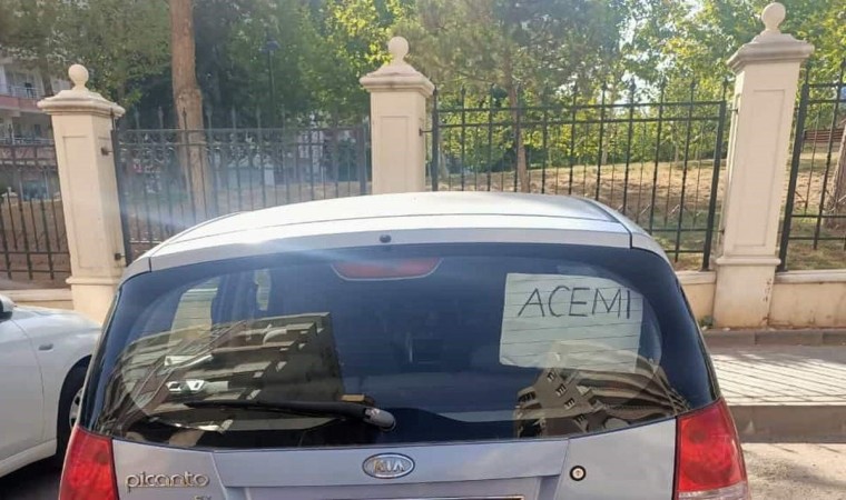 Siirt’te bir vatandaş, arabasının arkasına yazdığı “Acemi " yazısı ile görenleri gülümsetti.