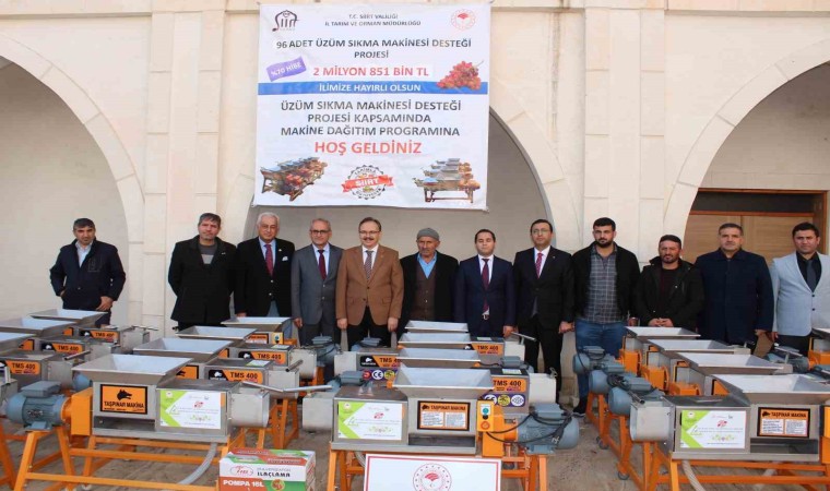 Siirt’te "Bağcılığın Geliştirilmesi ve Yaygınlaştırılması Projesi" kapsamında, çiftçilere yüzde 70 hibe ile 95 adet üzüm sıkma makinesi, 30 adet sırt pulverizatör ve 30 adet budama makası dağıtıldı.