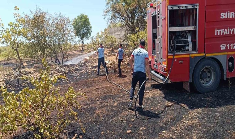Siirt’te fıstık bahçesinde çıkan yangında 5 dönüm alanda zarar meydana geldi.