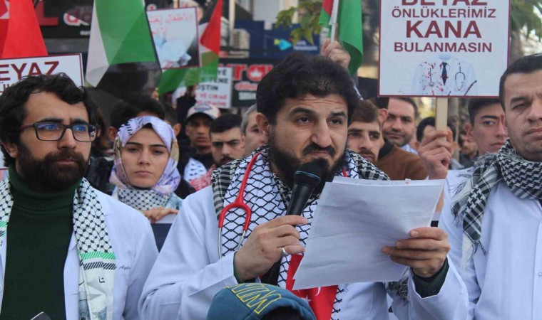 Siirt’te sağlık çalışanları ve doktorlar, Filistin’de yaşananlara olaylara dikkat çekmek amacıyla sessiz yürüyüş gerçekleştirdi.
