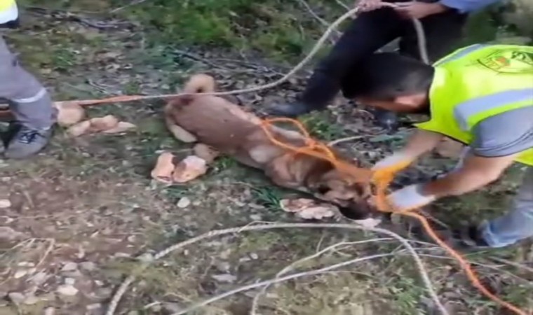 Siirt’te yaklaşık 80 metrelik kaya dehlizine düşen çoban köpeği, Eruh Arama ve Kurtarma Derneği (ERKUT) ekipleri tarafından kurtarıldı.