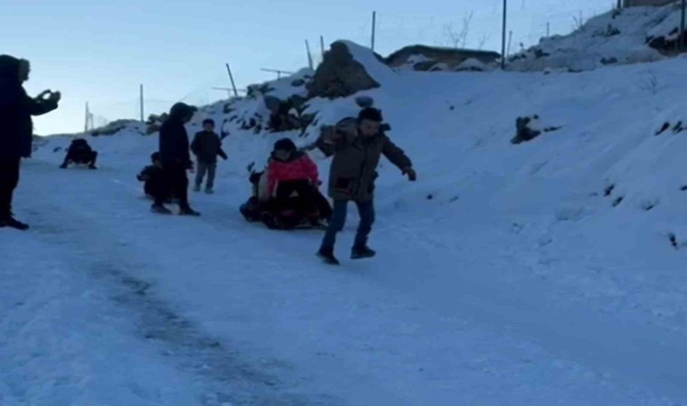 Siirt’in Pervari ilçesinde okul bahçesinde öğretmenleri ile birlikte kar topu oynayan öğrenciler, karın keyfini çıkardı.