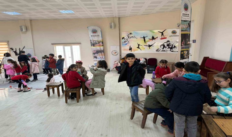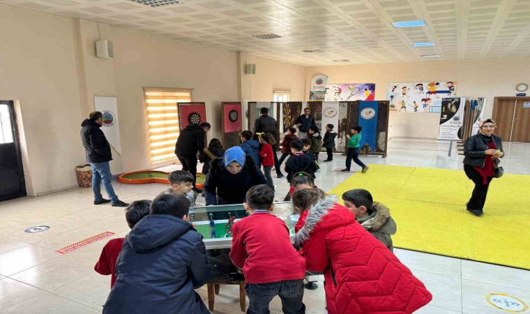 Öğrenciler, Siirt Belediyesi Spor İşleri Müdürlüğü spor salonunda çeşitli oyunlar oynayarak eğlenceli vakit geçiriyor.