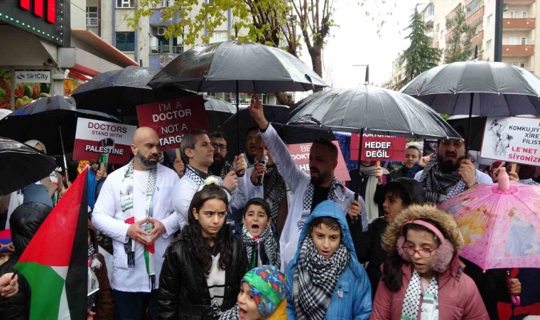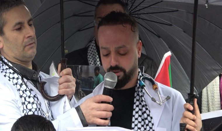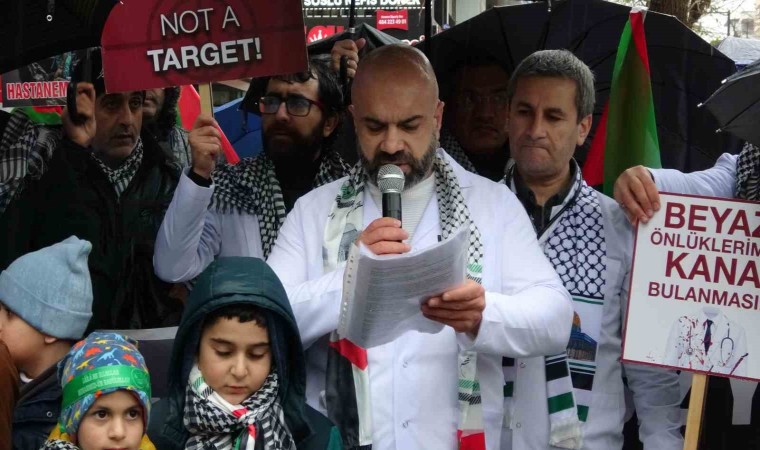 Güres Caddesi Kızılay Kan Merkezi önünde toplanan doktorlar ve sağlık çalışanları, Filistin’de yaşanan olaylara dikkat çekerek İsrail’i kınadı. Doktorlar, Irak’ın kuzeyinde terör örgütü mensupları tarafından yapılan saldırıda şehit olan askerlere rahmet, yakınlarına başsağlığı dileyerek açıklamada bulundu.